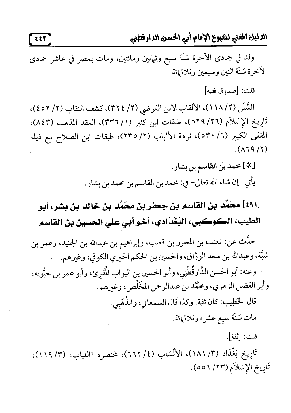 كتاب الدليل المغني لشيوخ الإمام أبي الحسن الدارقطني