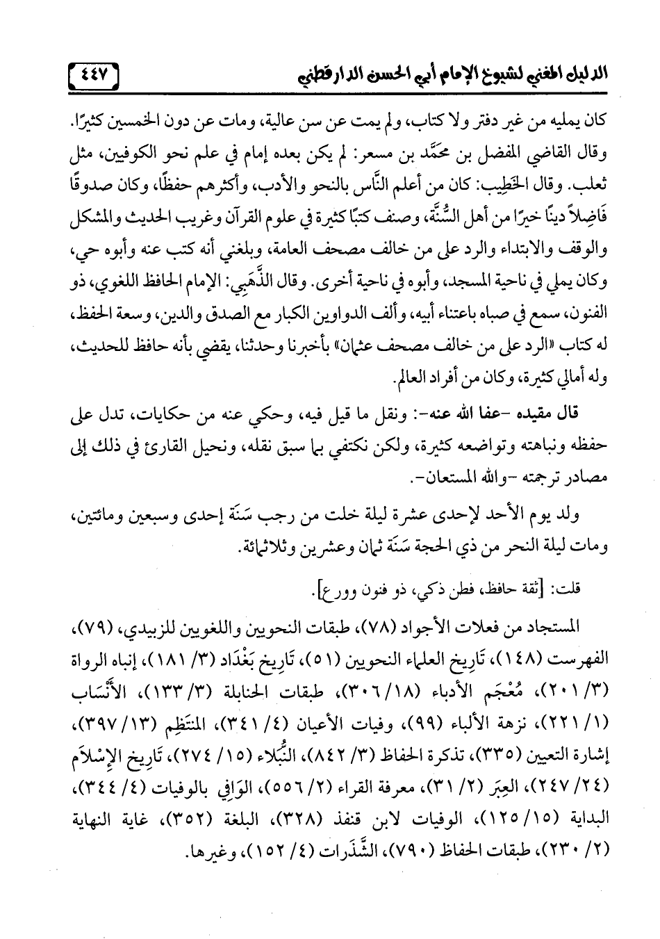كتاب الدليل المغني لشيوخ الإمام أبي الحسن الدارقطني