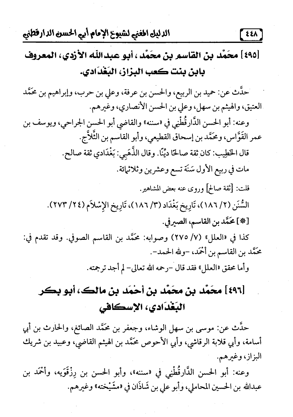 [495] محَمَّد بن القاسم بن محَمَّد، أبو عبد الله الازدي، المعروف بابن بنت كعب البزاز، البَغْدَادي.