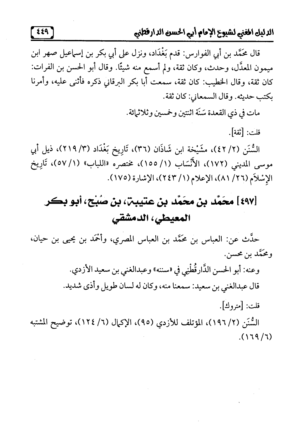 كتاب الدليل المغني لشيوخ الإمام أبي الحسن الدارقطني