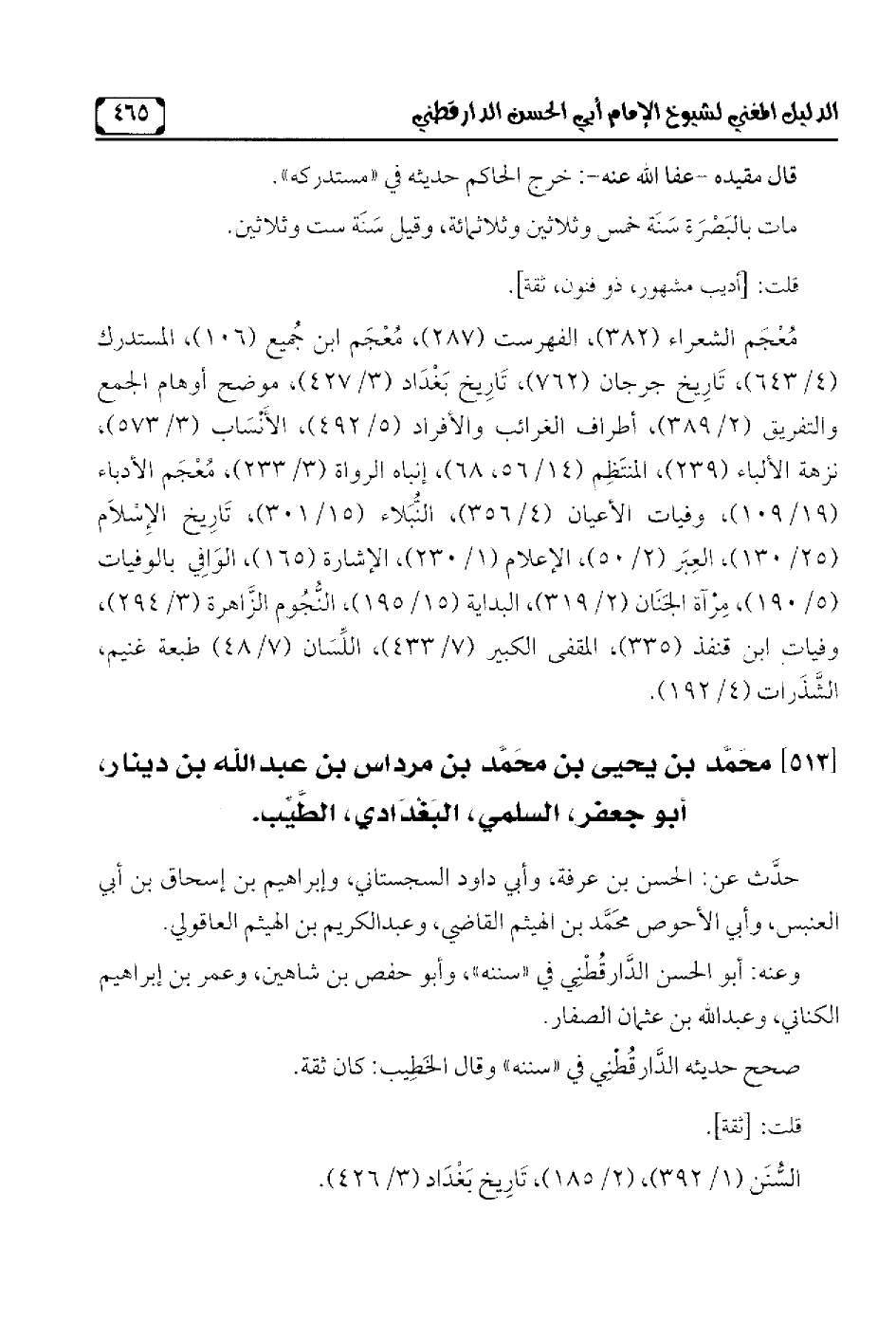 [513] محَمَّد بن يحيى بن محَمَّد بن مرداس بن عبد الله بن دينار، أبو جعفر، السلمي، البَغْدَادي، الطَّيِّب.