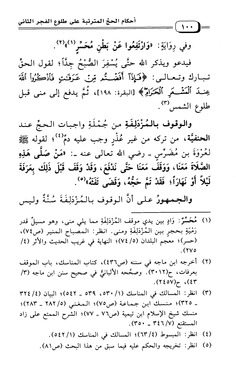 (¬3) انظر: المسالك في المناسك (1/ 530، 539 - 542) البيان (4/ 324، 325) منسك ابن جماعة (75) المغني (5/ 282، 283) منسك شيخ الإسلام ابن تيمية (76، 77) الشرح الممتع على زاد المستقنع (7/ 346 - 350).