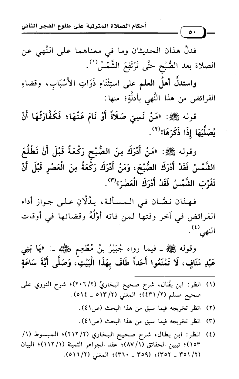 (¬1) انظر: ابن بطال، شرح صحيح البخاري (2/ 206) شرح النووي على صحيح مسلم (2/ 431) المغني (2/ 513، 514).