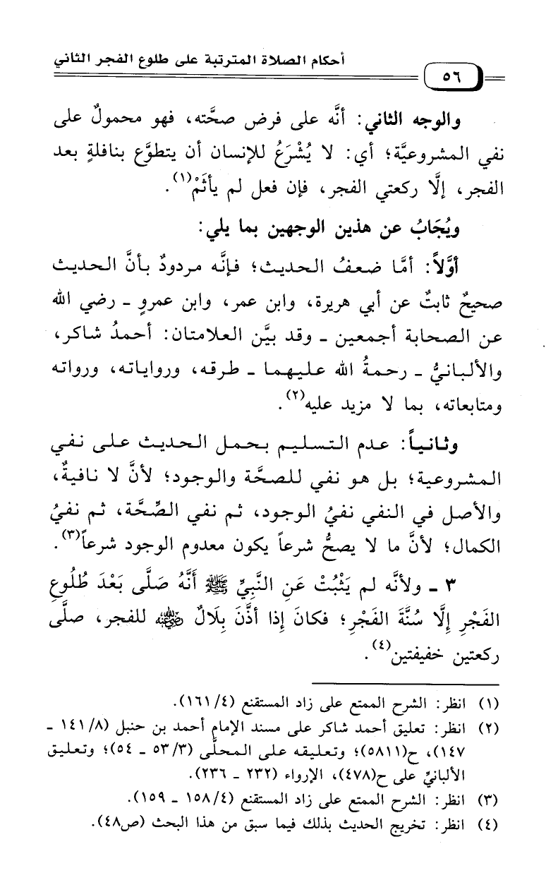 (¬2) انظر: تعليق أحمد شاكر على مسند الإمام أحمد بن حنبل (8/ 141 - 147) (5811) وتعليقه على المحلى (3/ 53، 54) وتعليق الألباني (478) الإرواء (232 - 236).