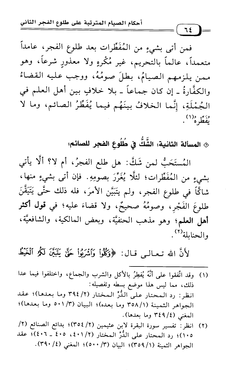 كتاب أحكام العبادات المترتبة على طلوع الفجر الثاني