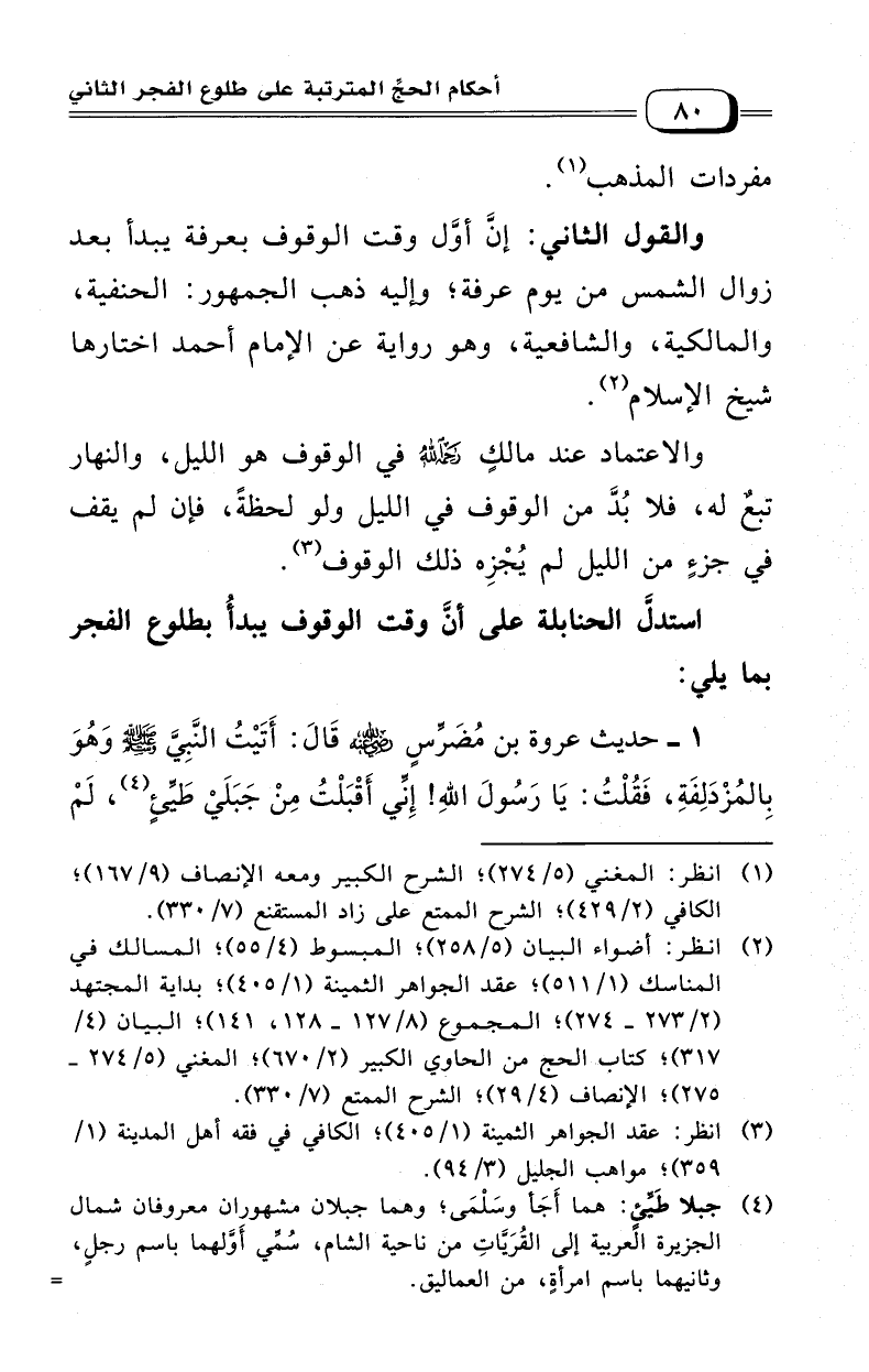 1 - حديث عروة بن مضرس رضي الله عنه قال: أتيت النبي - صلى الله عليه وسلم - وهو بالمزدلفة، فقلت: يا رسول الله! إني أقبلت من جبلي طييء (¬4) لم