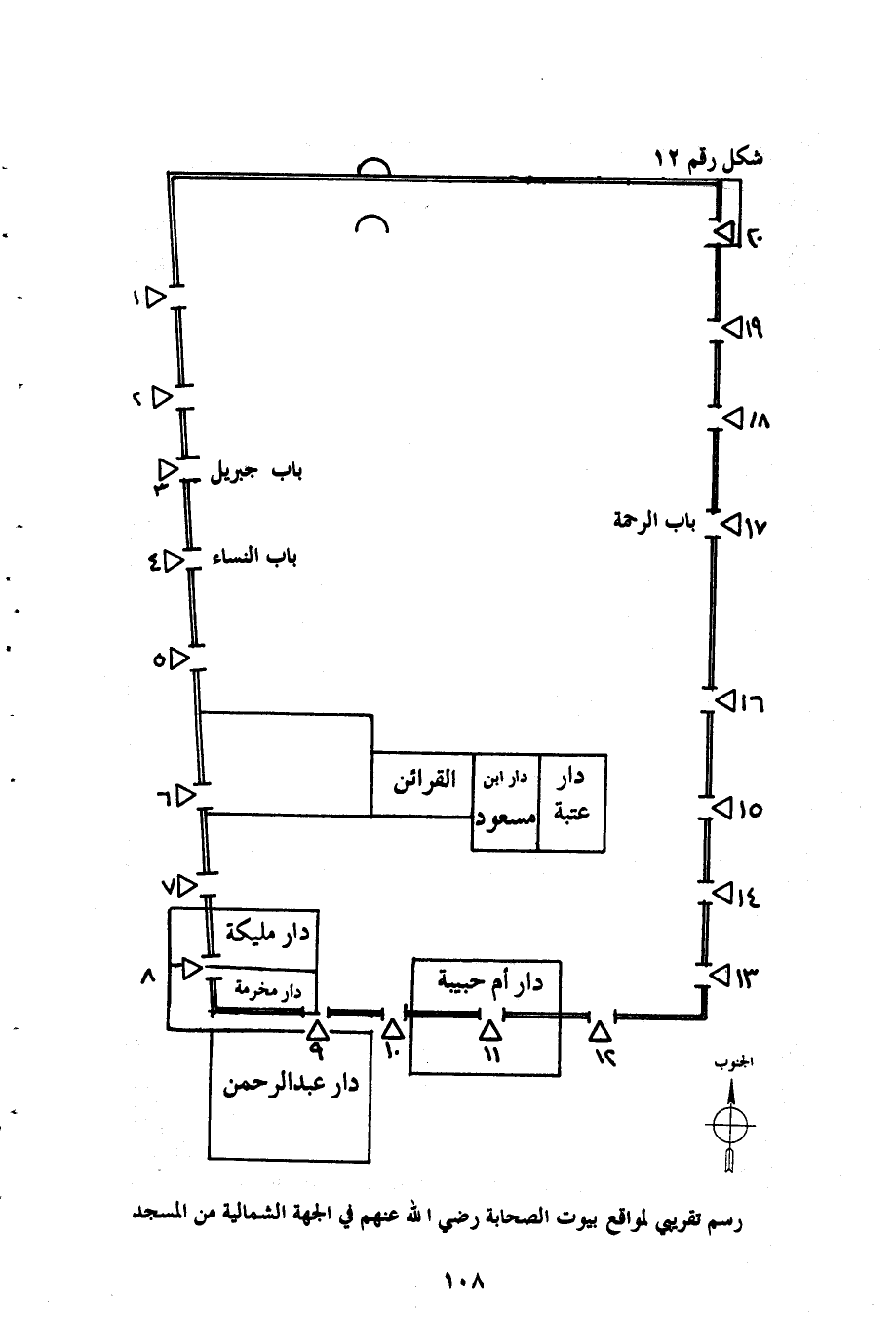 تقريبي لواقع بيوت الصحابة رضي الله عنهم في الجهة والشمالية من المسجد.