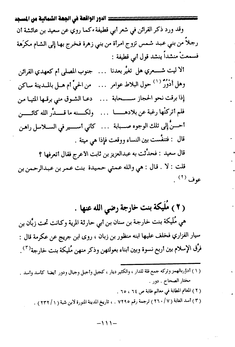 (3) أسد الغابة (7/ 260) ترجمة رقم 7295، تاريخ المدينة المنورة لابن شبة (5/ 232).