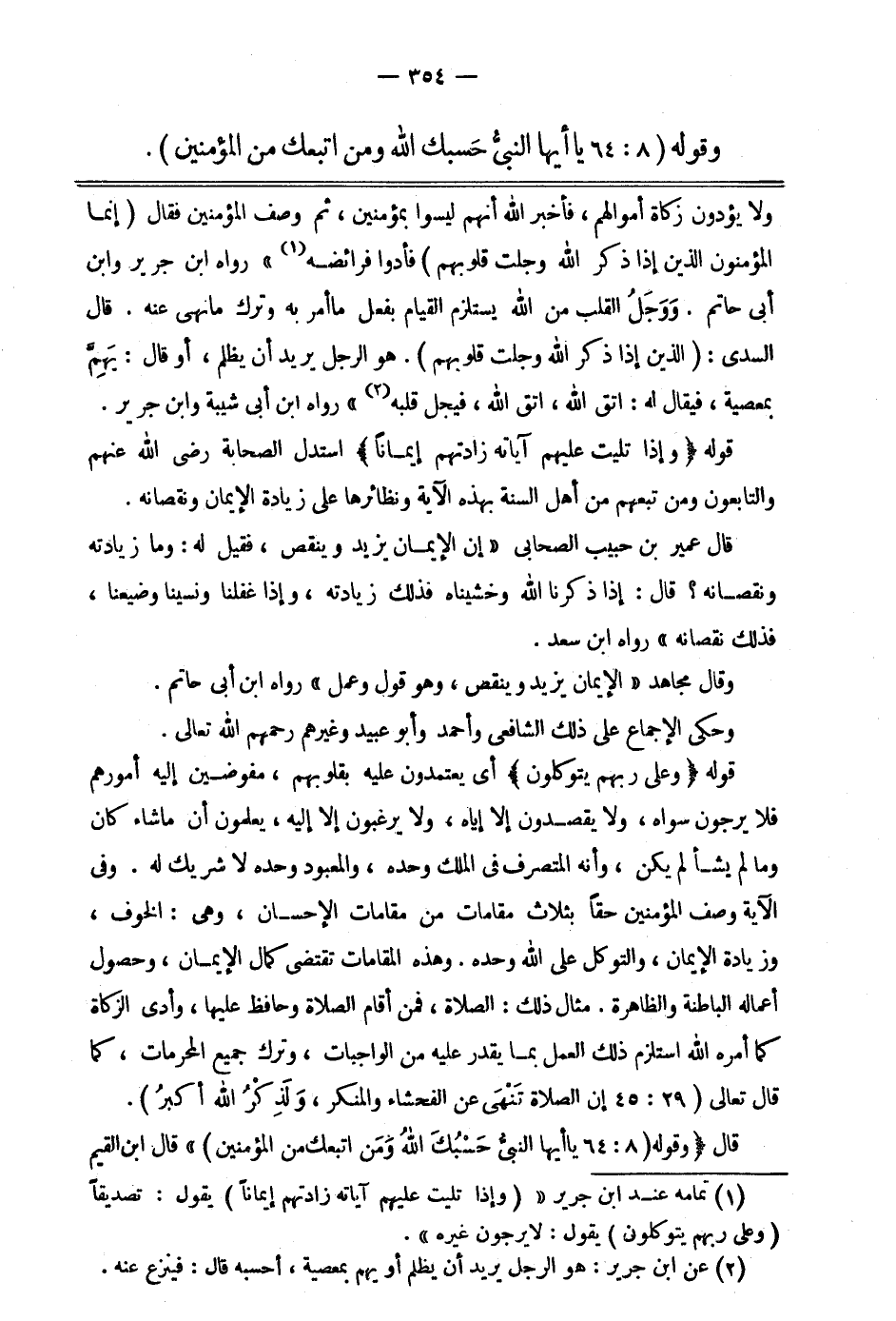 قوله: {وَإِذَا تُلِيَتْ عَلَيْهِمْ آيَاتُهُ زَادَتْهُمْ إِيمَاناً} 5. استدل الصحابة -رضي الله عنهم- والتابعون، ومن تبعهم من أهل السنة بهذه الآية ونظائرها على زيادة الإيمان ونقصانه.