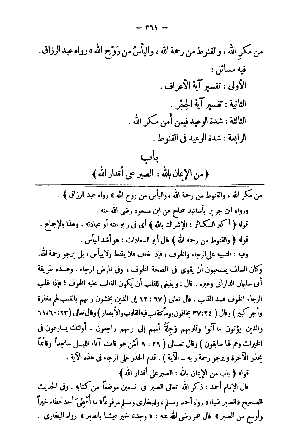 باب: " من الإيمان بالله: الصبر على أقدار الله"