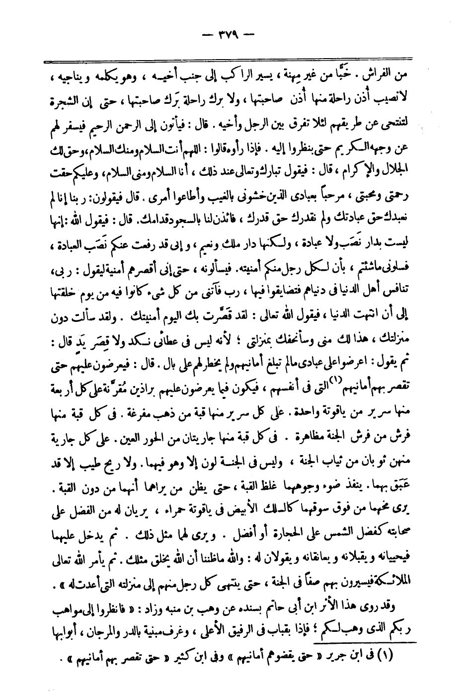 وقد روى هذا الأثر ابن أبي حاتم بسنده عن وهب بن منبه وزاد: "فانظروا إلى مواهب ربكم الذي وهب لكم، فإذا بقباب في الرفيق الأعلى، وغرف مبنية بالدر والمرجان أبوابها