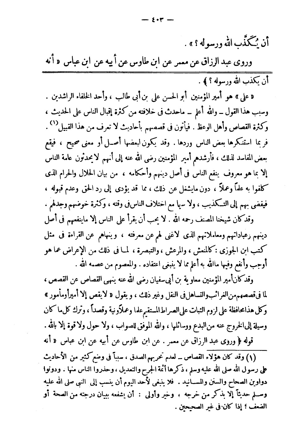 وقد كان أمير المؤمنين معاوية ابن أبي سفيان ينهى القصاص عن القصص; لما في قصصهم من الغرائب والتساهل في النقل وغير ذلك; ويقول: " لا يقص إلا أمير أو مأمور " 2. وكل هذا محافظة على لزوم الثبات على الصراط