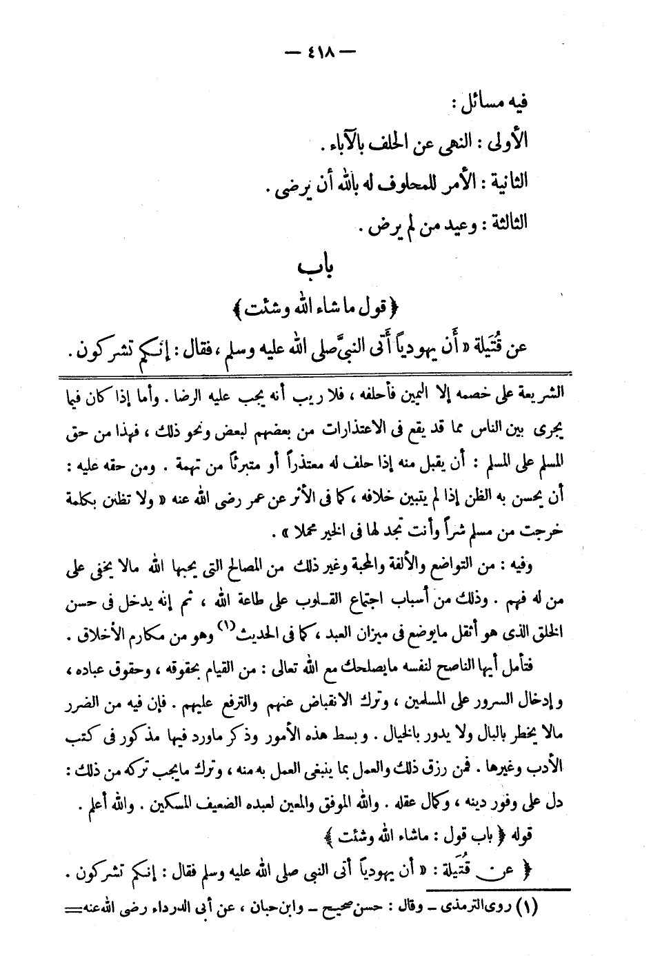 باب: "قول "ما شاء الله وشئت"