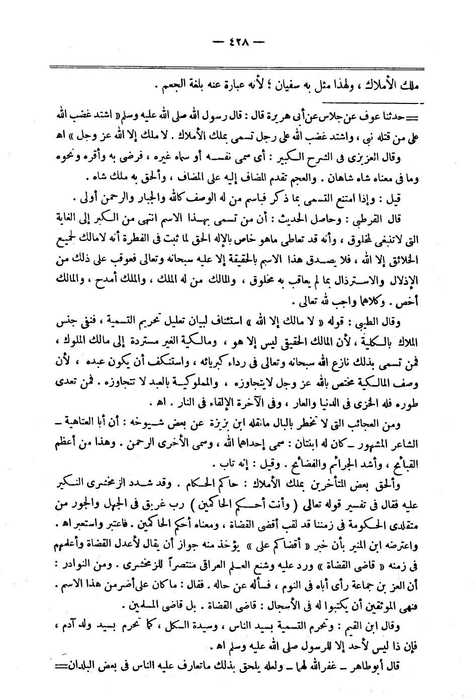 ملك الأملاك. ولهذا مثل به سفيان؛ لأنه عبارة عنه بلغة العجم.