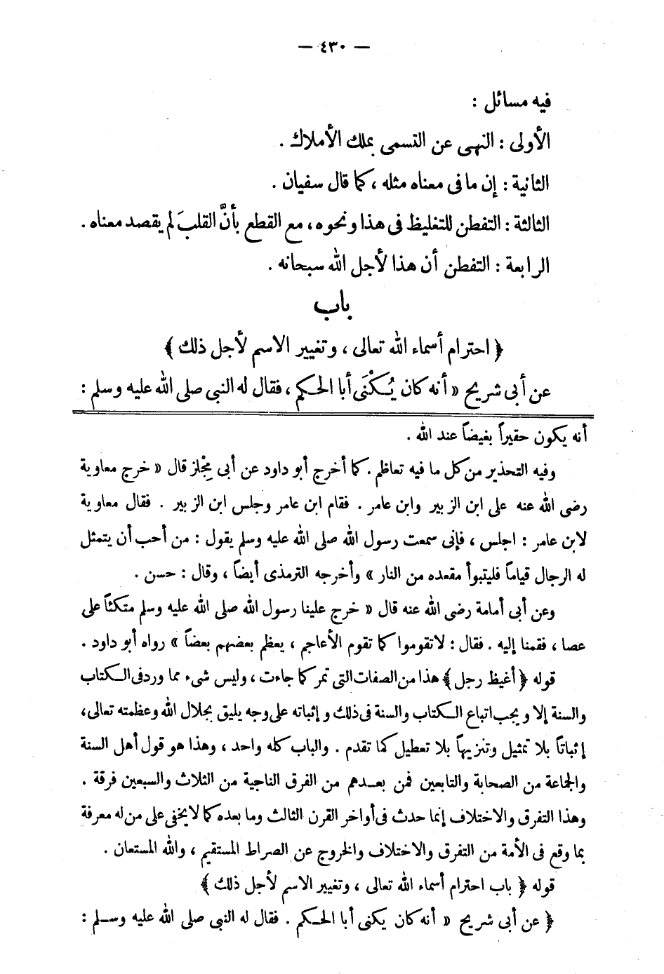 باب: " احترام أسماء الله تعالى وتغيير الاسم لأجل ذلك"