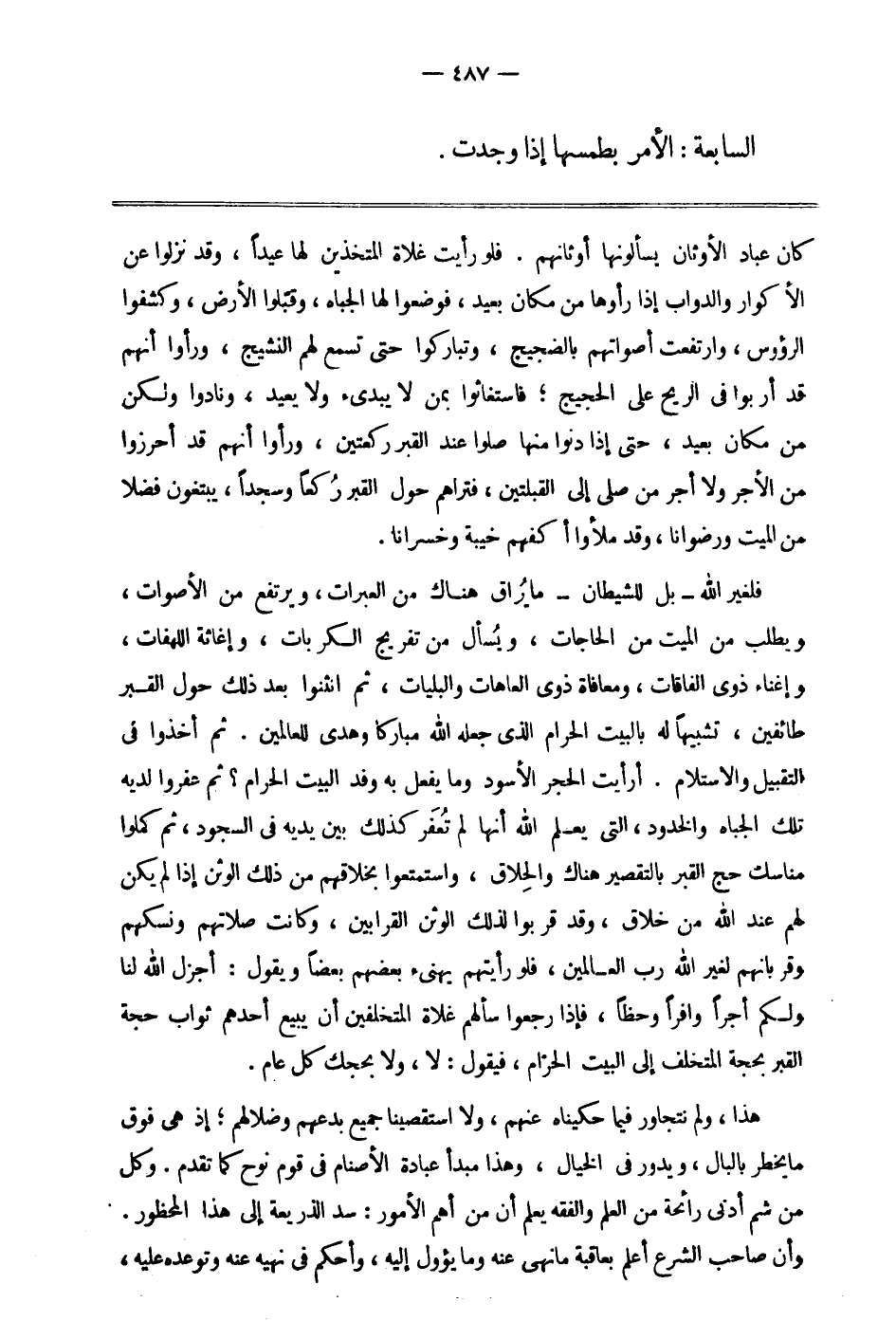 هذا ولم نتجاوز فيما حكيناه عنهم، ولا استقصينا جميع بدعهم وضلالهم; إذ هي فوق ما يخطر بالبال، ويدور في الخيال، وهذا مبدأ عبادة الأصنام في قوم نوح كما تقدم. وكل من شم أدنى رائحة من العلم والفقه يعلم أن من أهم الأمور، سد