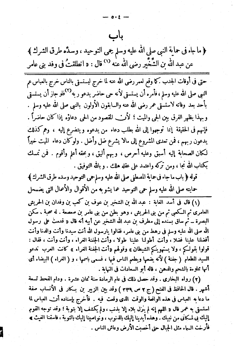 باب: " ما جاء في حماية النبي صلى الله عليه وسلم حِمى التوحيد، وسدِّه طرق الشرك"