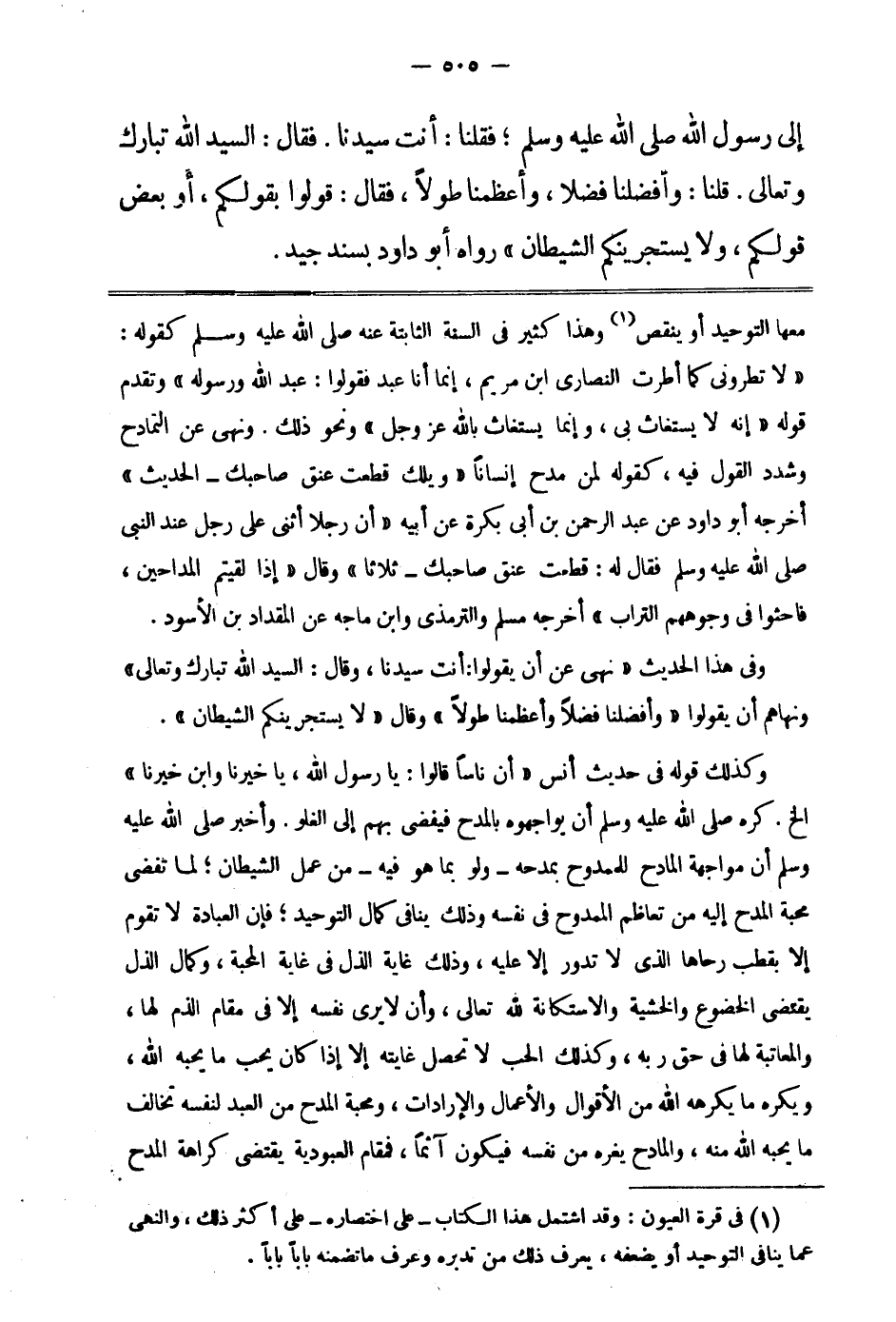1 في قرة العيون: وقد اشتمل هذا الكتاب- على اختصاره- على أكثر ذلك، والنهي عما ينافي التوحيد أو يضعفه، يعرف ذلك من تدبره وعرف ما تضمنه بابا بابا.