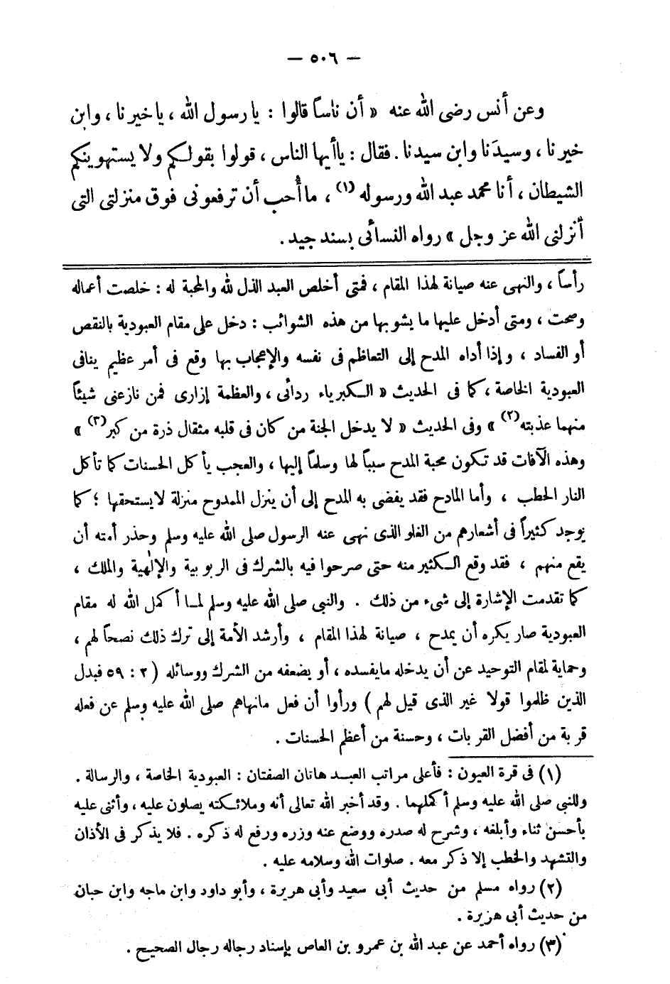 رأسا، والنهي عنه صيانة لهذا المقام، فمتى أخلص العبد الذل لله والمحبة له خلصت أعماله وصحت، ومتى أدخل عليها ما يشوبها من هذه الشوائب دخل على مقام العبودية بالنقص أو الفساد. وإذا أداه المدح إلى التعاظم في نفسه والإعجاب بها وقع في أمر عظيم ينافي العبودية الخاصة كما في الحديث: " الكبرياء ردائي والعظمة إزاري، فمن نازعني شيئا منهما عذبته " 1 2. وفي الحديث:
