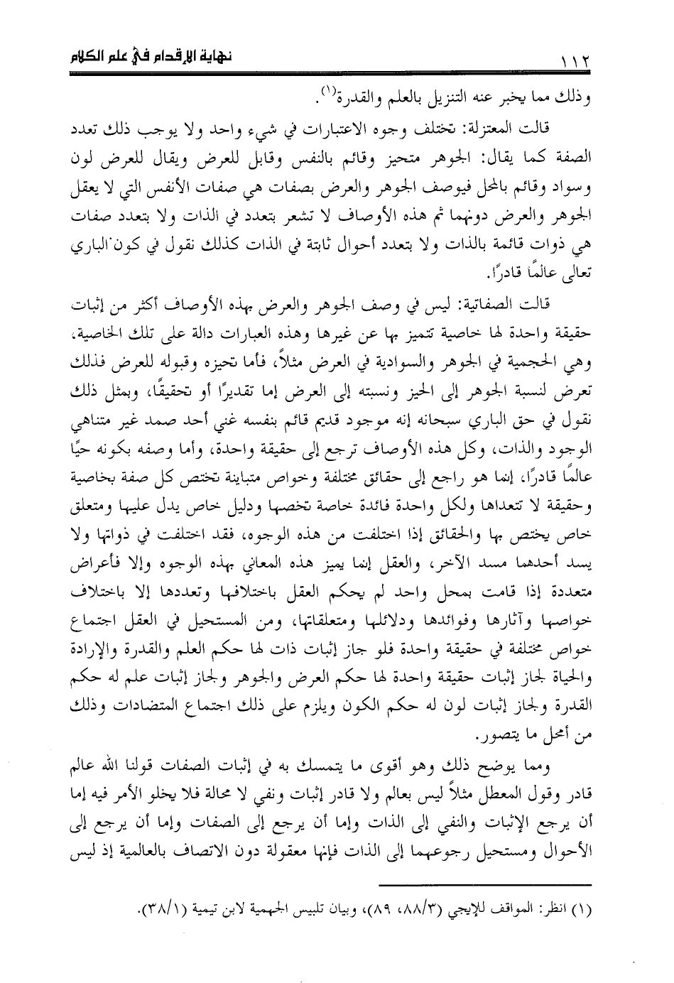 (1) انظر: المواقف للإيجي (3/ 88، 89)، وبيان تلبيس الجهمية لابن تيمية (1/ 38).