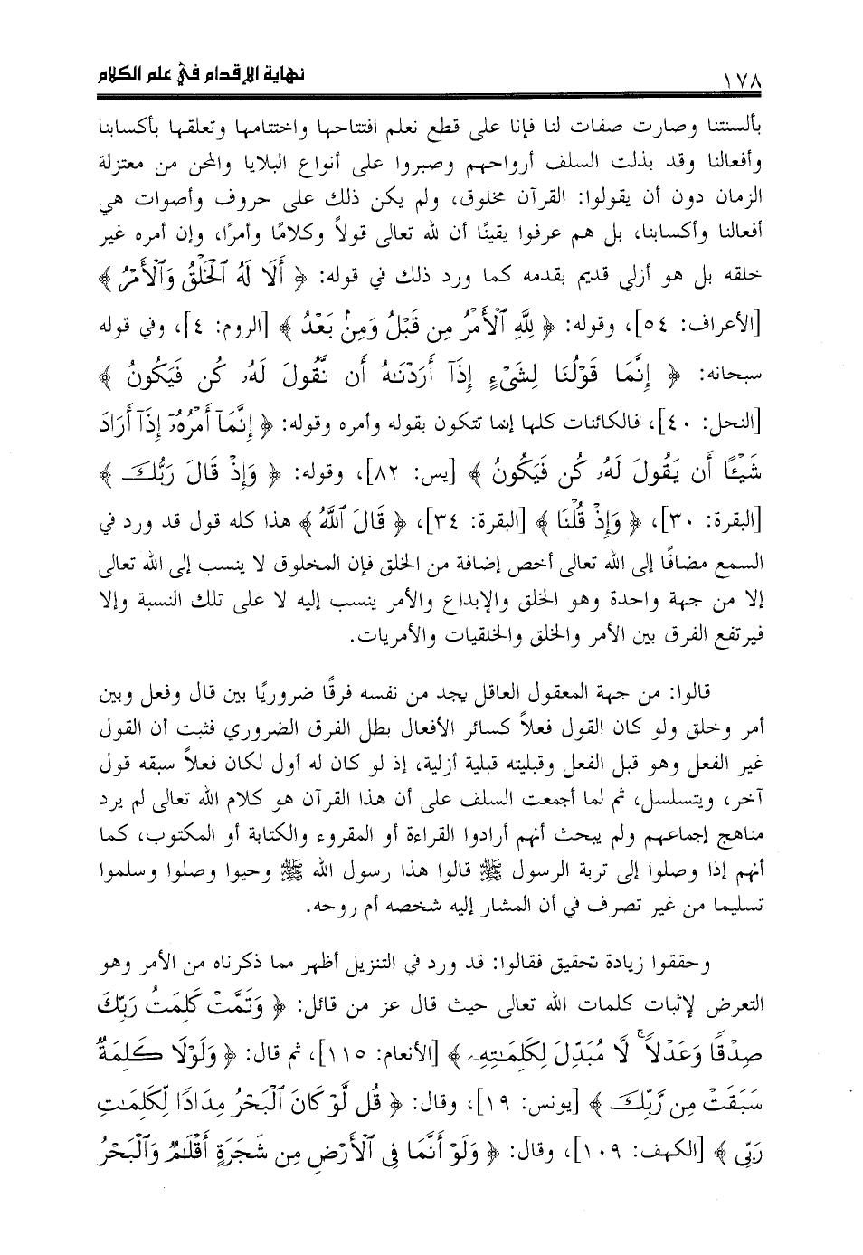 وحققوا زيادة تحقيق فقالوا: قد ورد في التنزيل أظهر مما ذكرناه من الأمر وهو التعرض لإثبات كلمات اللّه تعالى حيث قال عز من قائل: وَ تَمَّتْ كَلِمَةُ رَبِّكَ صِدْقاً وَ عَدْلًا لا مُبَدِّلَ لِكَلِماتِهِ [الأنعام: 115]، ثم قال: وَ لَوْ لا كَلِمَةٌ سَبَقَتْ مِنْ رَبِّكَ [يونس: 19]، وقال: قُلْ لَوْ كانَ الْبَحْرُ مِداداً لِكَلِماتِ رَبِّي [الكهف: 109]، وقال: وَ لَوْ أَنَّ ما فِي الْأَرْضِ مِنْ شَجَرَةٍ أَقْلامٌ وَ الْبَحْرُ