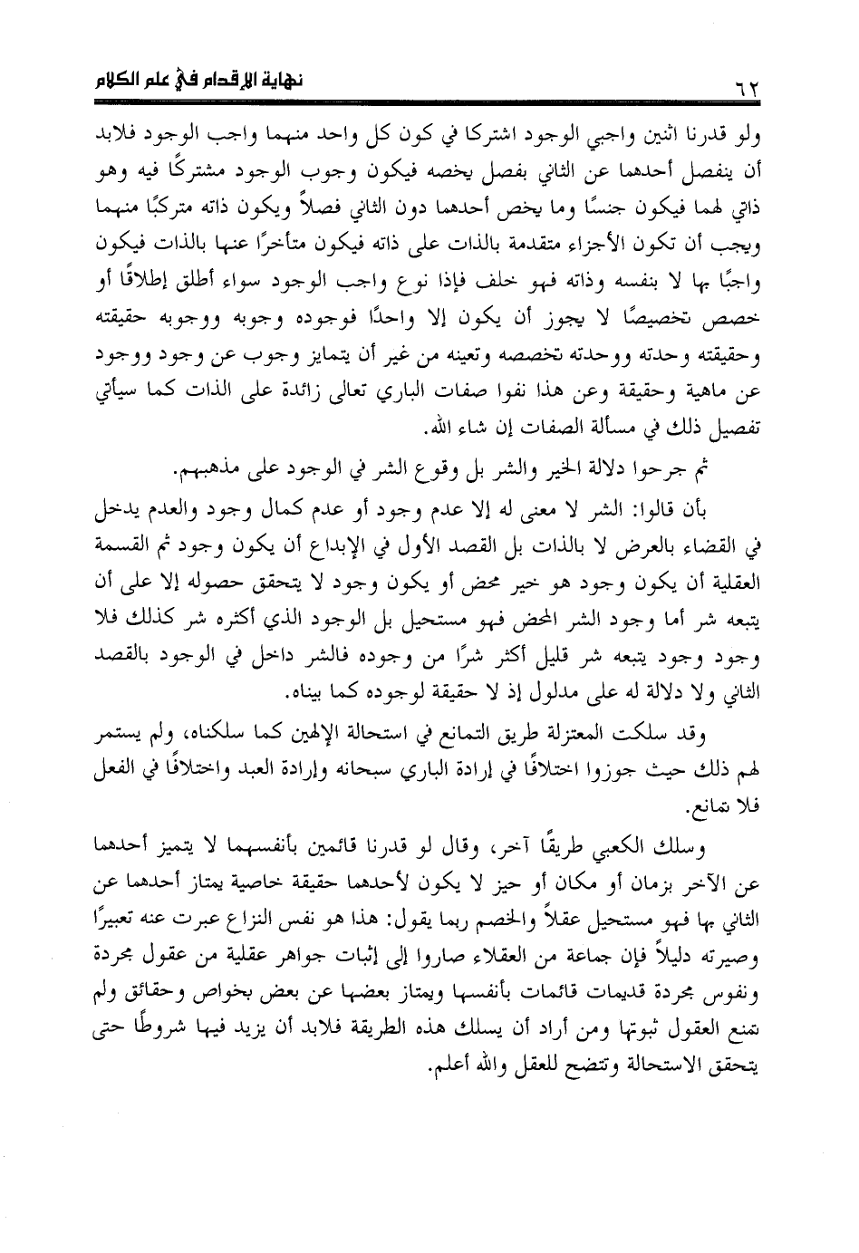ثم جرحوا دلالة الخير والشر بل وقوع الشر في الوجود على مذهبهم.