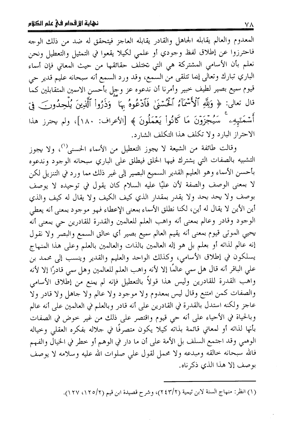 (1) انظر: منهاج السنة لابن تيمية (2/ 243)، وشرح قصيدة ابن قيم (2/ 125، 127).