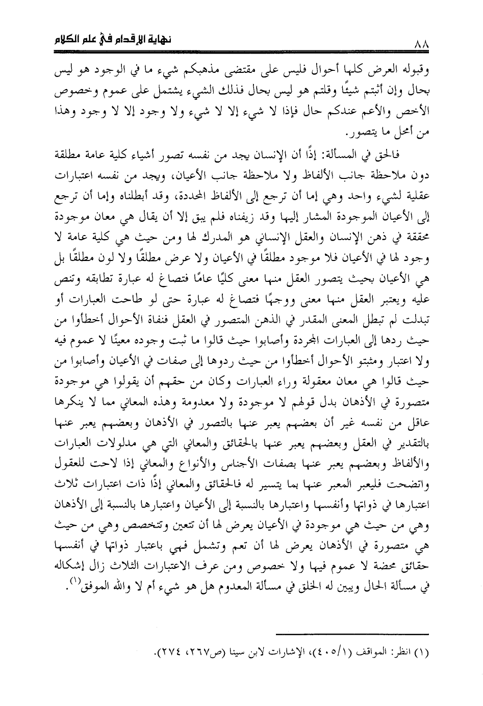 (1) انظر: المواقف (1/ 405)، الإشارات لابن سينا (ص 267، 274).