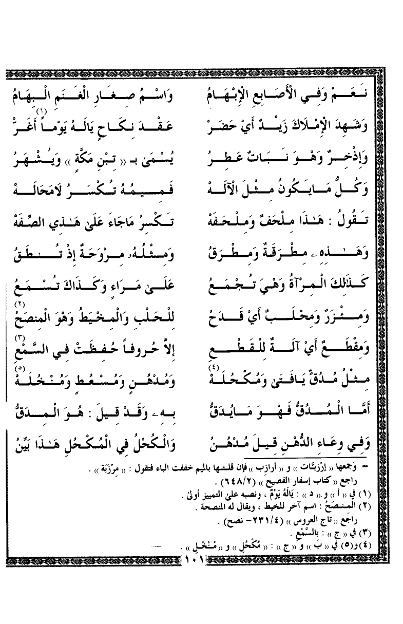 ومئزر ومِحلبٌ أيْ قدحُ ... للحلب والمخيط وهو المنصحُ