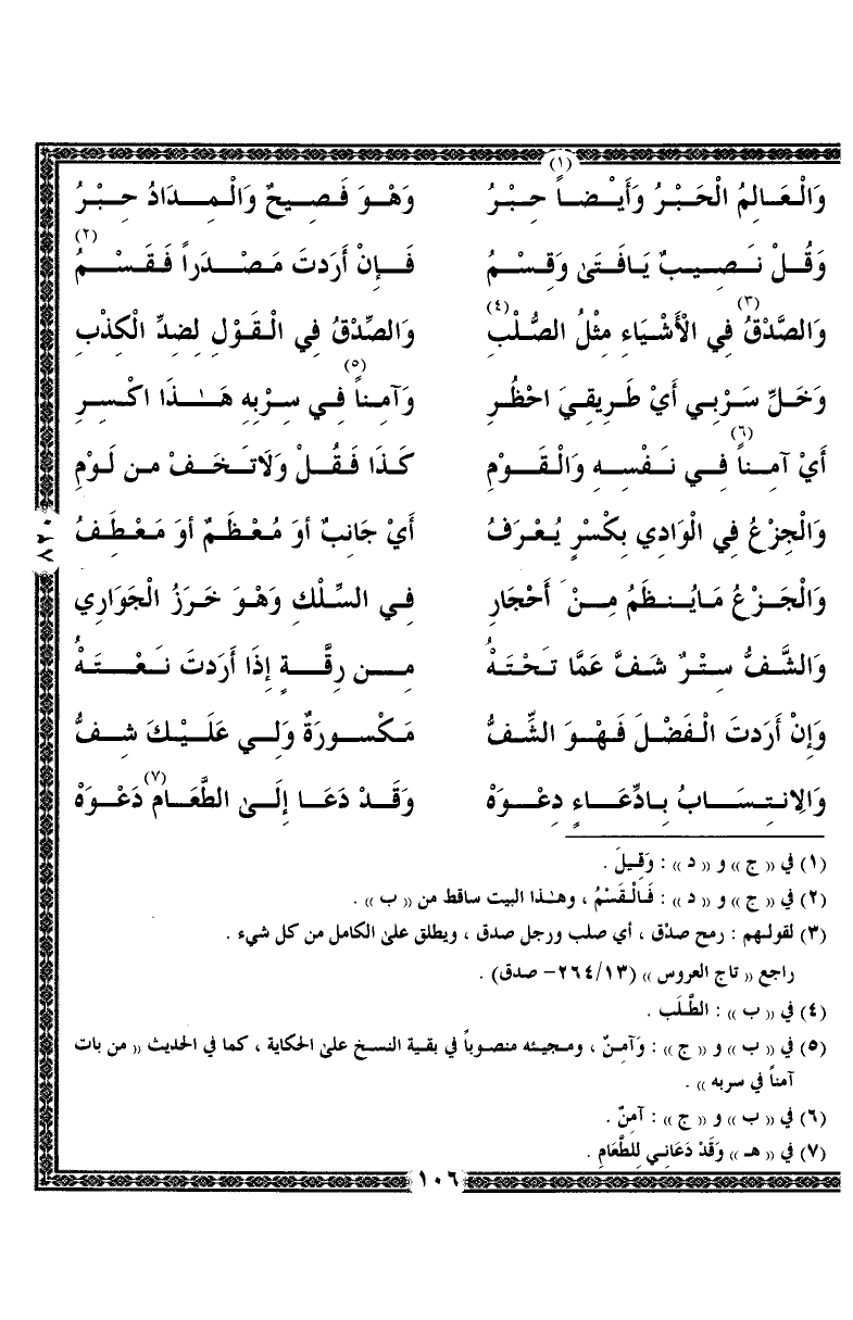 والصدقُ في الأشياء مثل الصُّلبِ ... والصِدقُ في القول بضد الكذبِ
