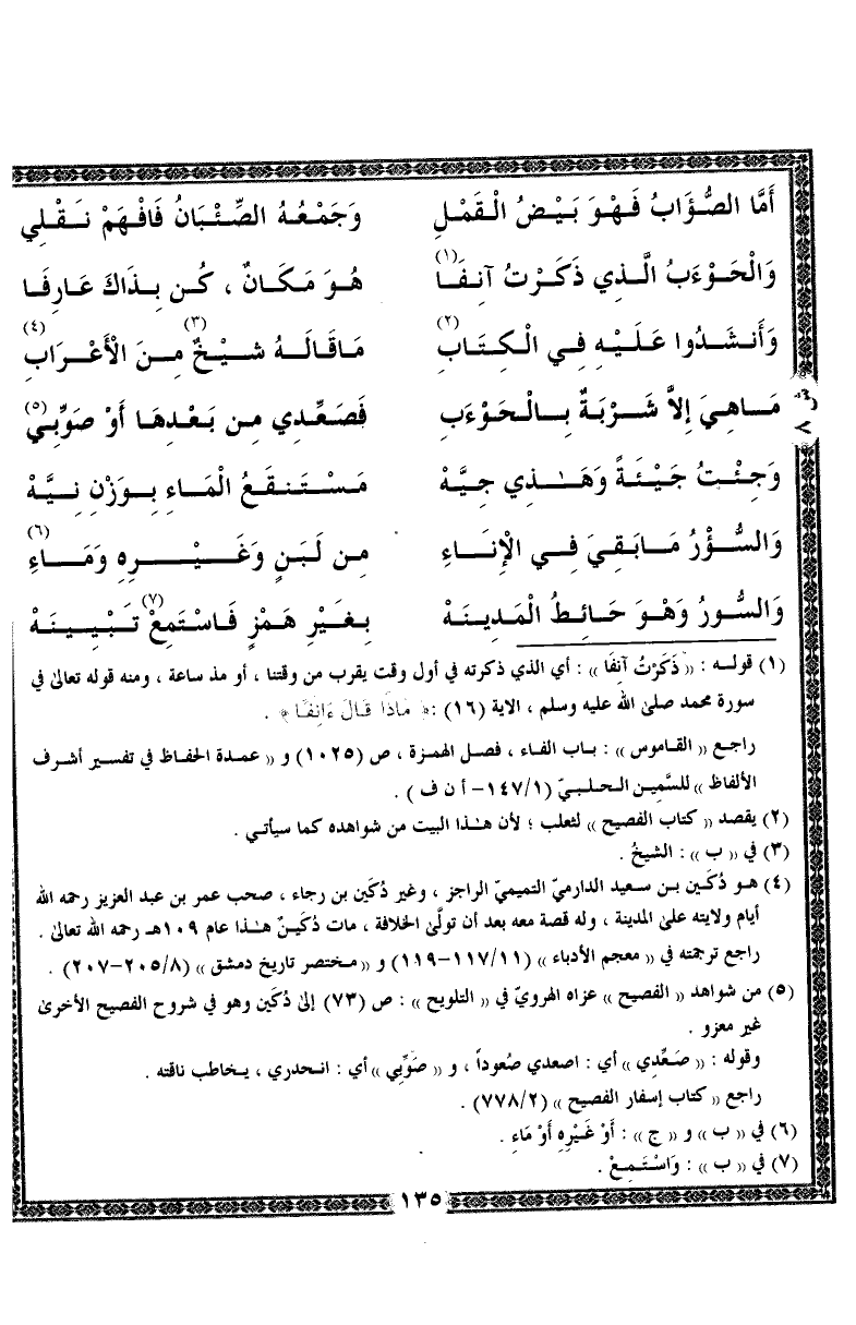 وأنشدوا عليه في الكتابِ ... ما قاله شيخٌ من الأعرابِ