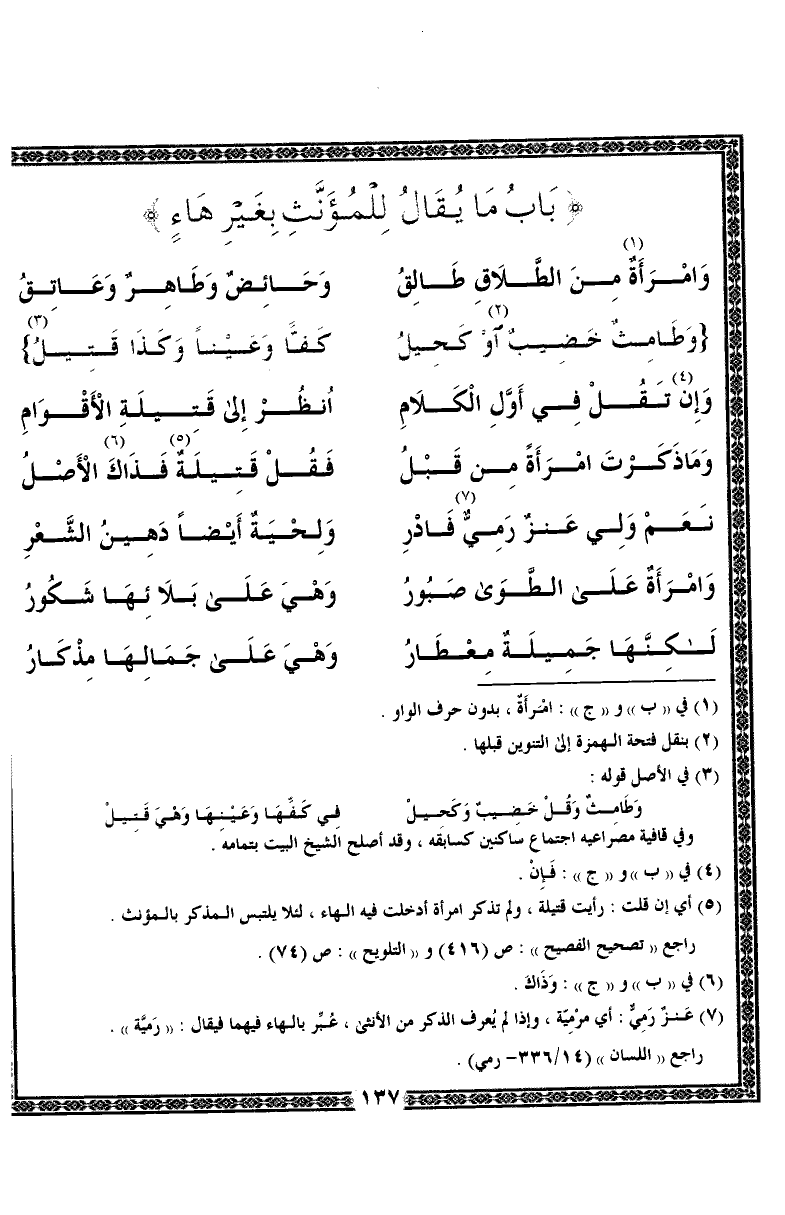 باب ما يقال للمؤنث بغير هاء