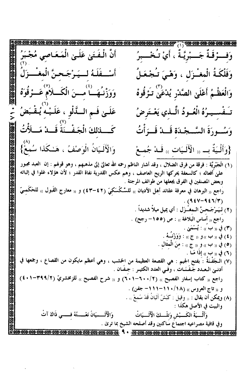 وفرقة جبْريّة أي تُخبر ... أن الفتى على المعاصي مُجبر