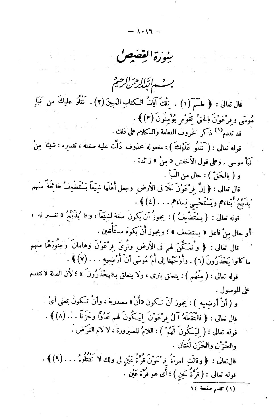 قَالَ تَعَالَى: (طسم (1) تِلْكَ آيَاتُ الْكِتَابِ الْمُبِينِ (2) نَتْلُوا عَلَيْكَ مِنْ نَبَأِ مُوسَى وَفِرْعَوْنَ بِالْحَقِّ لِقَوْمٍ يُؤْمِنُونَ (3)) .