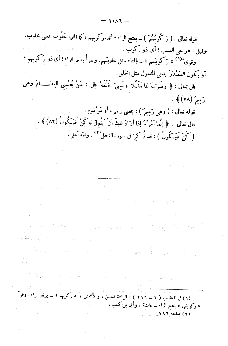 قَوْلُهُ تَعَالَى: (رَكُوبُهُمْ) : بِفَتْحِ الرَّاءِ أَيْ مَرْكُوبُهُمْ، كَمَا قَالُوا حَلُوبٌ بِمَعْنَى مَحْلُوبٍ.