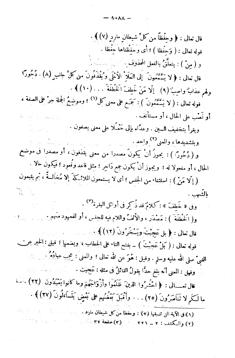 وَ (دُحُورًا) : يَجُوزُ أَنْ يَكُونَ مَصْدَرًا مِنْ مَعْنَى يَقْذِفُونَ، أَوْ مَصْدَرًا فِي مَوْضِعِ الْحَالِ، أَوْ مَفْعُولًا لَهُ؛ وَيَجُوزُ أَنْ يَكُونَ جَمْعَ دَاحِرٍ؛ مِثْلَ قَاعِدٍ وَقُعُودٍ؛ فَيَكُونَ حَالًا.