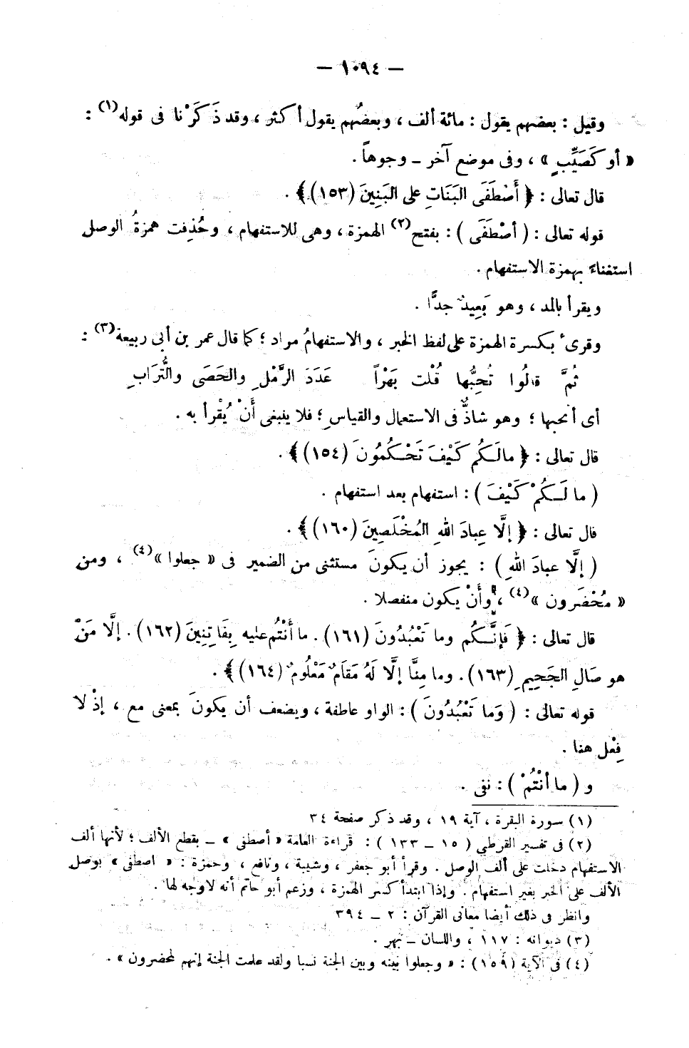 قَوْلُهُ تَعَالَى: (أَصْطَفَى) : بِفَتْحِ الْهَمْزَةِ، وَهِيَ لِلِاسْتِفْهَامِ، وَحُذِفَتْ هَمْزَةُ الْوَصْلِ اسْتِغْنَاءً بِهَمْزَةِ الِاسْتِفْهَامِ.