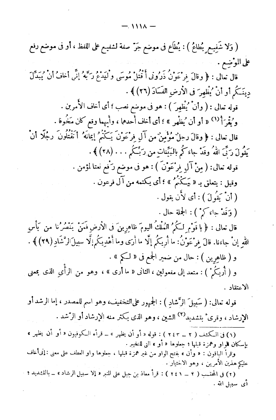 قَوْلُهُ تَعَالَى: (مِنْ آلِ فِرْعَوْنَ) : هُوَ فِي مَوْضِعِ رَفْعٍ نَعْتًا لِمُؤْمِنٍ.