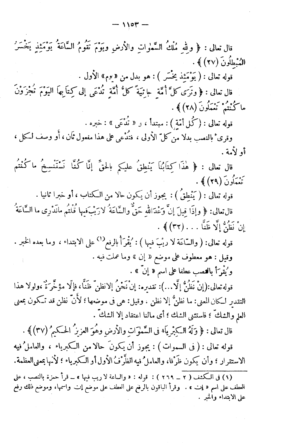 قَالَ تَعَالَى: (وَتَرَى كُلَّ أُمَّةٍ جَاثِيَةً كُلُّ أُمَّةٍ تُدْعَى إِلَى كِتَابِهَا الْيَوْمَ تُجْزَوْنَ مَا كُنْتُمْ تَعْمَلُونَ (28)) .