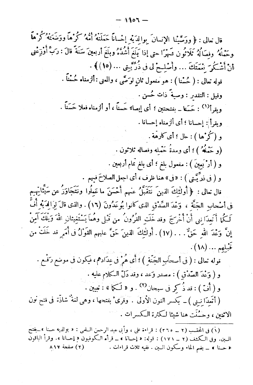 قَالَ تَعَالَى: (وَوَصَّيْنَا الْإِنْسَانَ بِوَالِدَيْهِ إِحْسَانًا حَمَلَتْهُ أُمُّهُ كُرْهًا وَوَضَعَتْهُ كُرْهًا وَحَمْلُهُ وَفِصَالُهُ ثَلَاثُونَ شَهْرًا حَتَّى إِذَا بَلَغَ أَشُدَّهُ وَبَلَغَ أَرْبَعِينَ سَنَةً قَالَ رَبِّ أَوْزِعْنِي أَنْ أَشْكُرَ نِعْمَتَكَ الَّتِي أَنْعَمْتَ عَلَيَّ وَعَلَى وَالِدَيَّ وَأَنْ أَعْمَلَ صَالِحًا تَرْضَاهُ وَأَصْلِحْ لِي فِي ذُرِّيَّتِي إِنِّي تُبْتُ إِلَيْكَ وَإِنِّي مِنَ الْمُسْلِمِينَ (15)) .