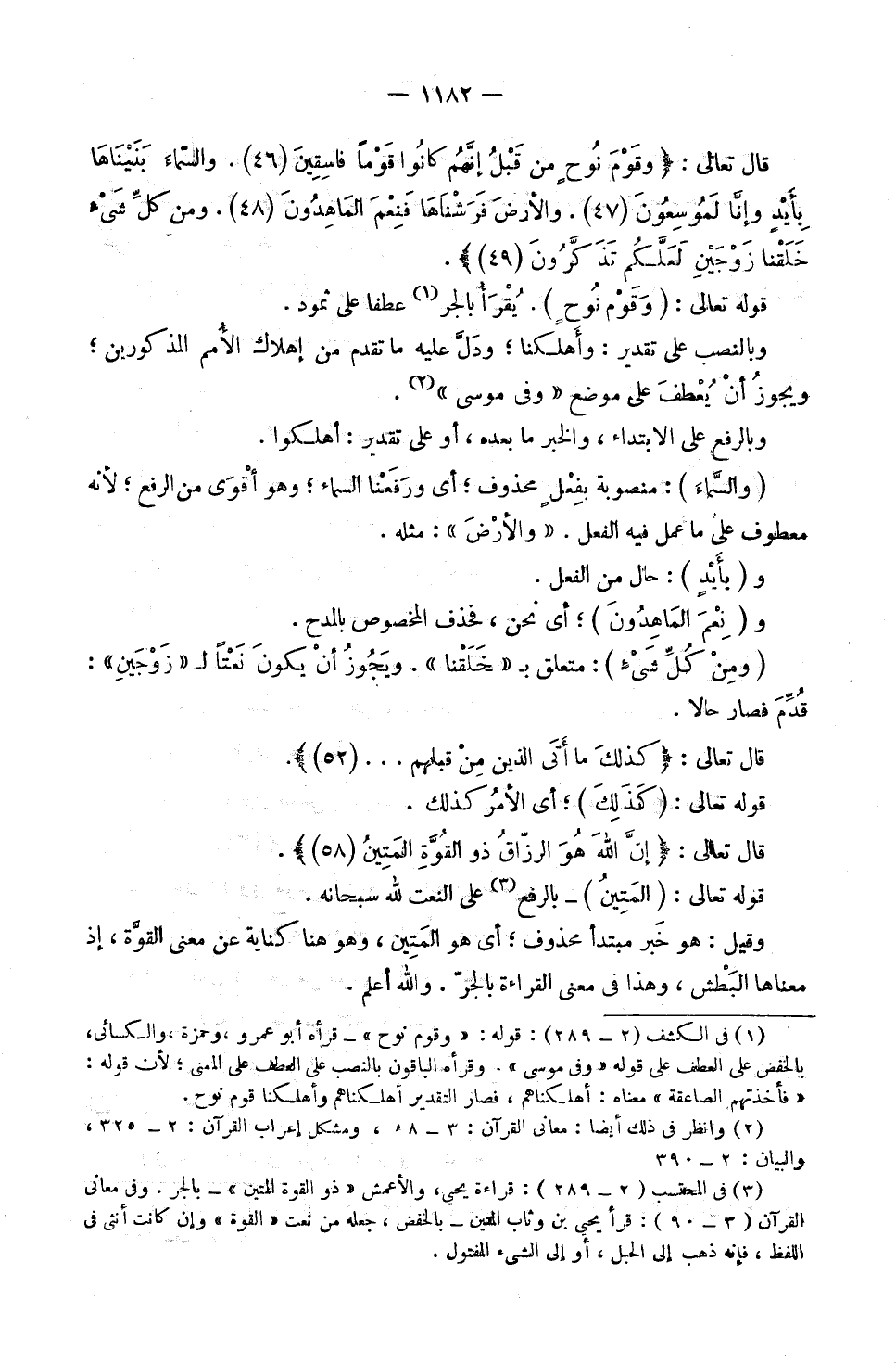 قَوْلُهُ تَعَالَى: (وَقَوْمَ نُوحٍ) : يُقْرَأُ بِالْجَرِّ عَطْفًا عَلَى ثَمُودَ.
