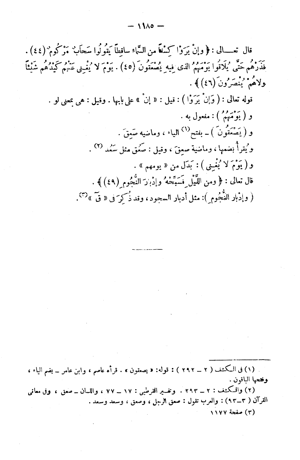 قَالَ تَعَالَى: (وَإِنْ يَرَوْا كِسْفًا مِنَ السَّمَاءِ سَاقِطًا يَقُولُوا سَحَابٌ مَرْكُومٌ (44) فَذَرْهُمْ حَتَّى يُلَاقُوا يَوْمَهُمُ الَّذِي فِيهِ يُصْعَقُونَ (45) يَوْمَ لَا يُغْنِي عَنْهُمْ كَيْدُهُمْ شَيْئًا وَلَا هُمْ يُنْصَرُونَ (46)) .