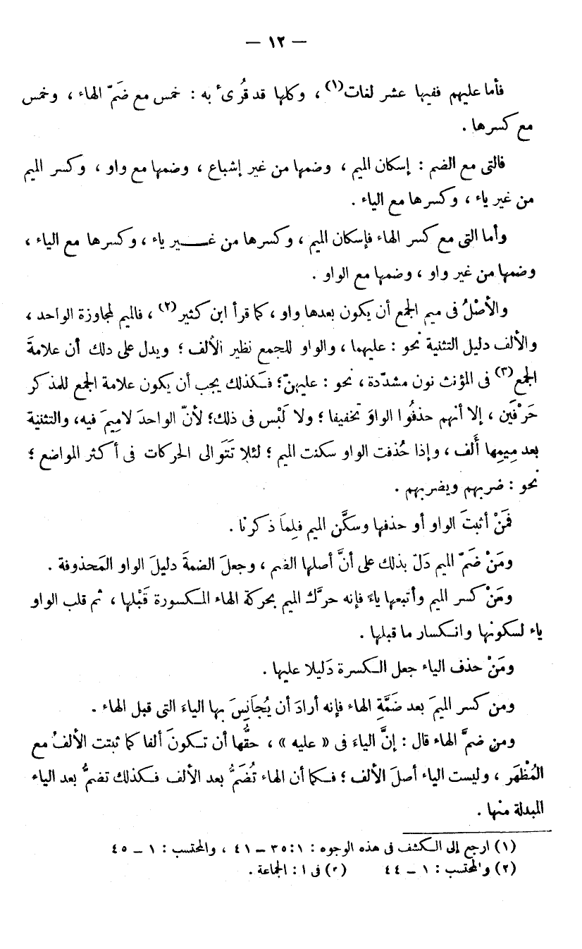 فَأَمَّا (عَلَيْهِمْ) فَفِيهَا عَشْرُ لُغَاتٍ، وَكُلُّهَا قَدْ قُرِئَ بِهِ: خَمْسٌ مَعَ ضَمِّ الْهَاءِ، وَخَمْسٌ مَعَ كَسْرِهَا.
