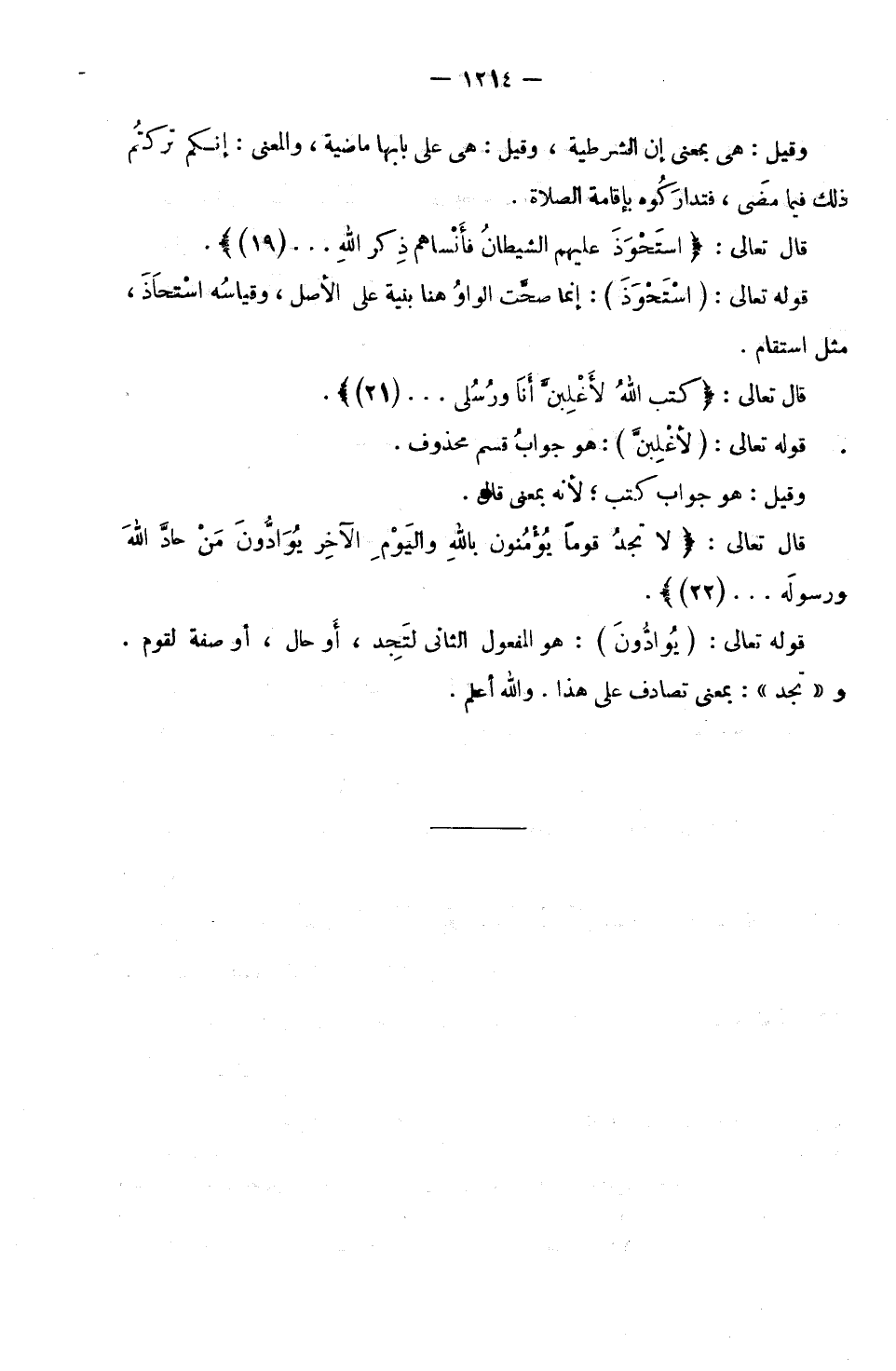 قَوْلُهُ تَعَالَى: (لَأَغْلِبَنَّ) : هُوَ جَوَابُ قَسَمٍ مَحْذُوفٍ.