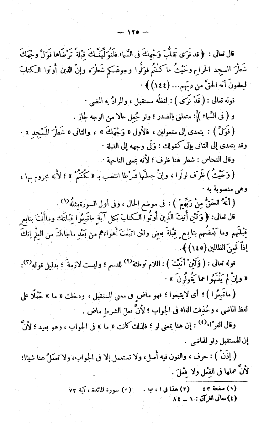 قَالَ تَعَالَى: (وَلَئِنْ أَتَيْتَ الَّذِينَ أُوتُوا الْكِتَابَ بِكُلِّ آيَةٍ مَا تَبِعُوا قِبْلَتَكَ وَمَا أَنْتَ بِتَابِعٍ قِبْلَتَهُمْ وَمَا بَعْضُهُمْ بِتَابِعٍ قِبْلَةَ بَعْضٍ وَلَئِنِ اتَّبَعْتَ أَهْوَاءَهُمْ مِنْ بَعْدِ مَا جَاءَكَ مِنَ الْعِلْمِ إِنَّكَ إِذًا لَمِنَ الظَّالِمِينَ (145)) .