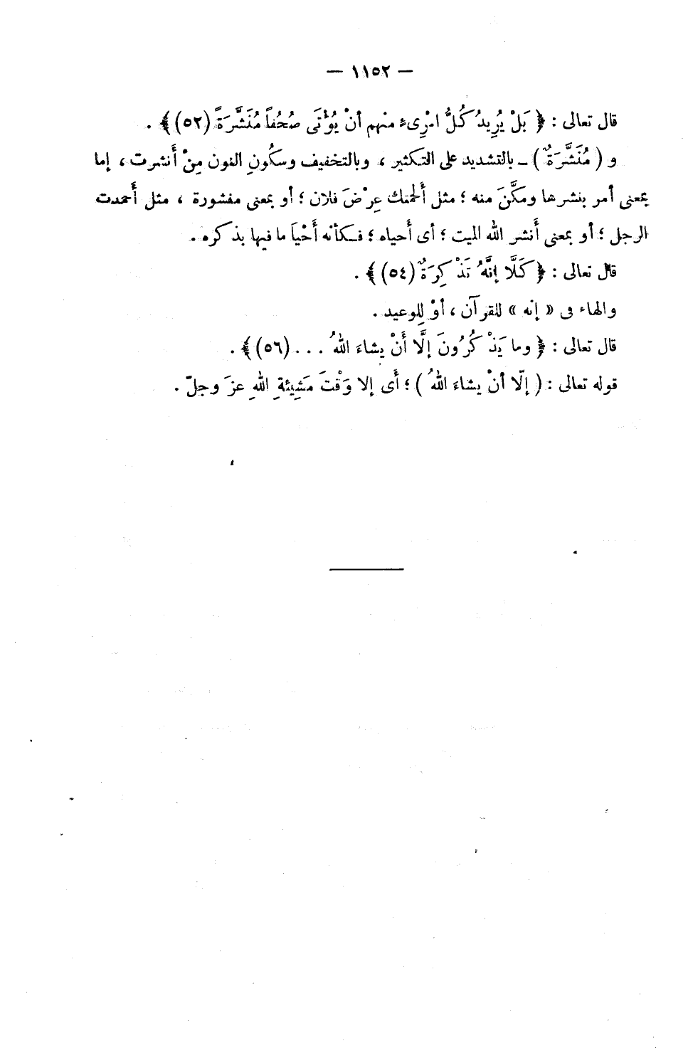 قَالَ تَعَالَى: (بَلْ يُرِيدُ كُلُّ امْرِئٍ مِنْهُمْ أَنْ يُؤْتَى صُحُفًا مُنَشَّرَةً (52)) .