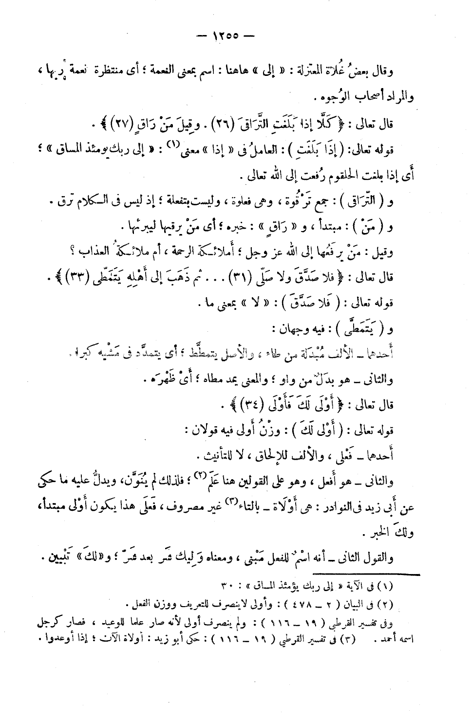 قَوْلُهُ تَعَالَى: (إِذَا بَلَغَتِ) : الْعَامِلُ فِي «إِذَا» مَعْنَى: (إِلَى رَبِّكَ يَوْمَئِذٍ الْمَسَاقُ) [سُورَةُ الْقِيَامَةِ: 30] أَيْ إِذَا بَلَغَتِ الْحُلْقُومَ رُفِعَتْ إِلَى اللَّهِ تَعَالَى.