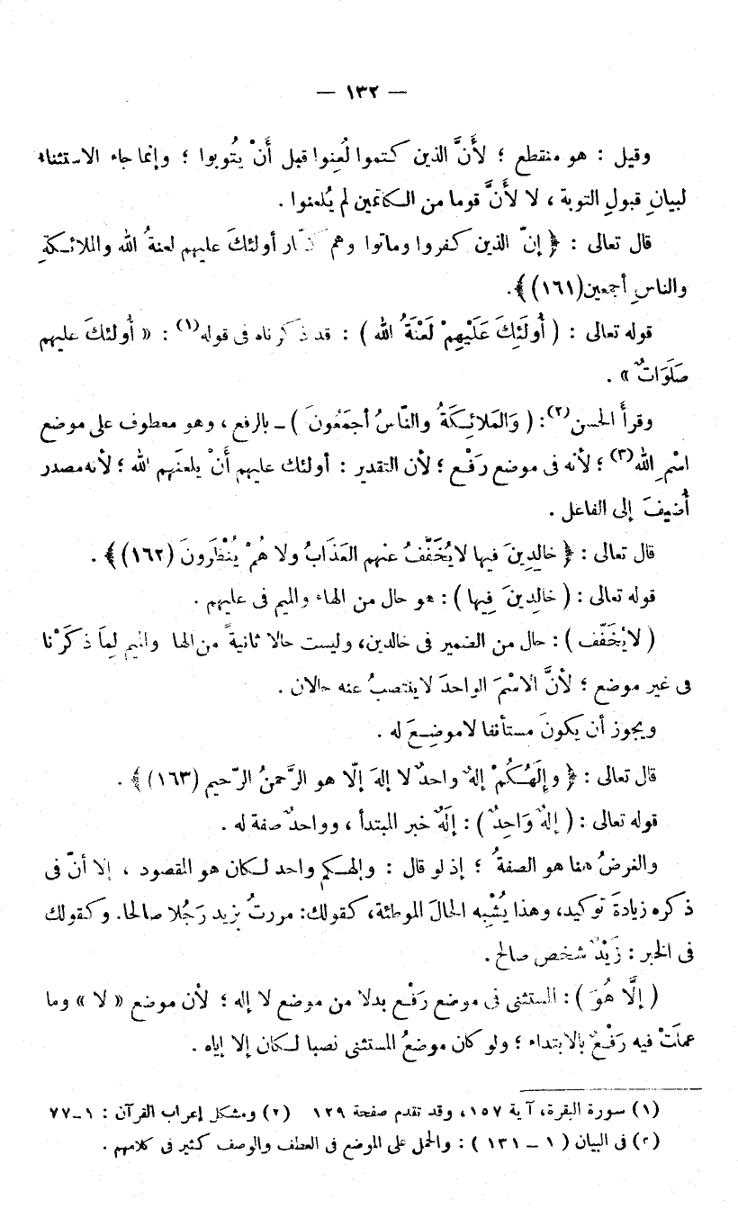 وَقِيلَ هُوَ مُنْقَطِعٌ لِأَنَّ الَّذِينَ كَتَمُوا لُعِنُوا قَبْلَ أَنْ يَتُوبُوا، وَإِنَّمَا جَاءَ الِاسْتِثْنَاءُ لِبَيَانِ قَبُولِ التَّوْبَةِ لَا لِأَنَّ قَوْمًا مِنَ الْكَاتِمِينَ لَمْ يُلْعَنُوا.