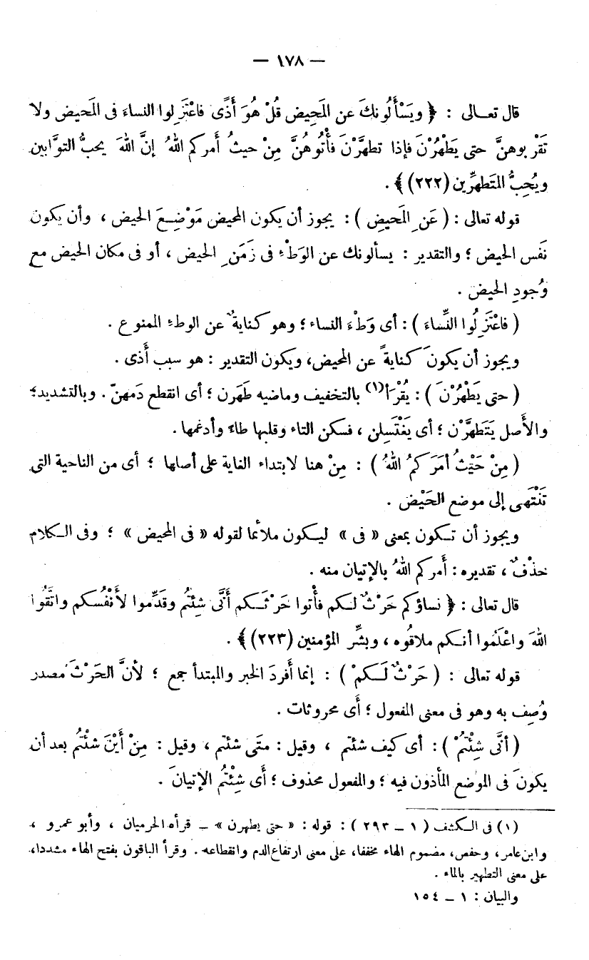 قَالَ تَعَالَى: (وَيَسْأَلُونَكَ عَنِ الْمَحِيضِ قُلْ هُوَ أَذًى فَاعْتَزِلُوا النِّسَاءَ فِي الْمَحِيضِ وَلَا تَقْرَبُوهُنَّ حَتَّى يَطْهُرْنَ فَإِذَا تَطَهَّرْنَ فَأْتُوهُنَّ مِنْ حَيْثُ أَمَرَكُمُ اللَّهُ إِنَّ اللَّهَ يُحِبُّ التَّوَّابِينَ وَيُحِبُّ الْمُتَطَهِّرِينَ (222)) .