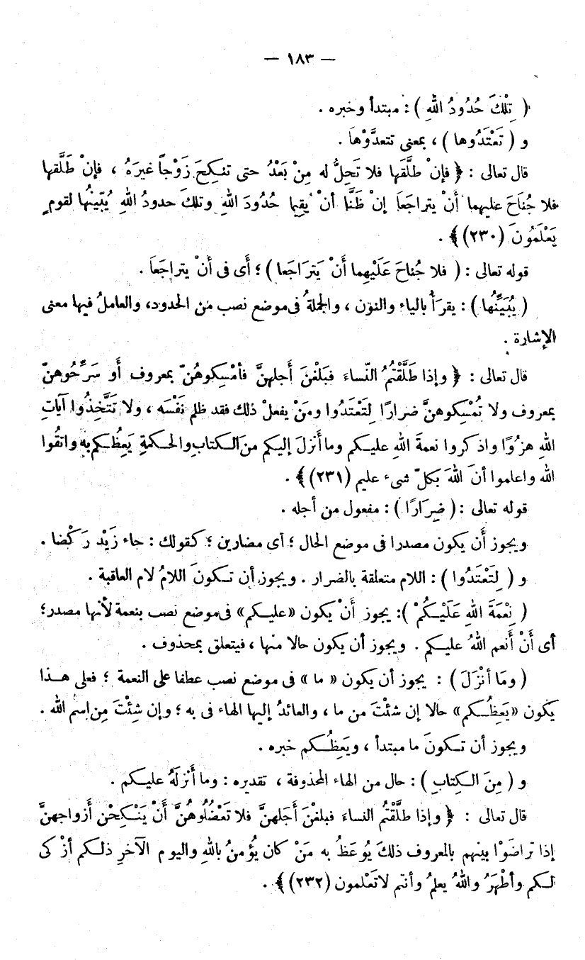 (تِلْكَ حُدُودُ اللَّهِ) : مُبْتَدَأٌ وَخَبَرُهُ. وَ (تَعْتَدُوهَا) : بِمَعْنَى تَتَعَدُّوهَا.